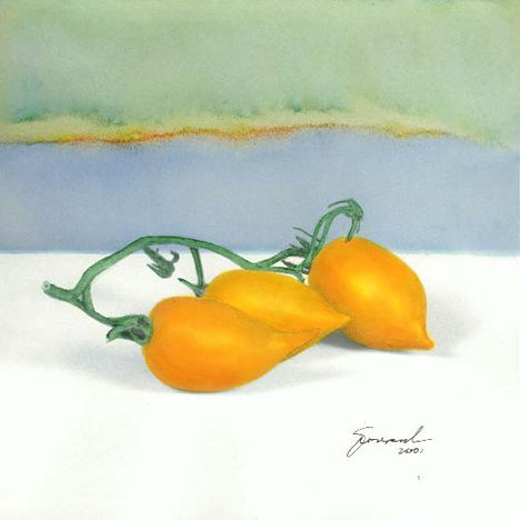 Amish Gold 8" x 8" watercolor and oil on black and white photograph order now more tomatoes