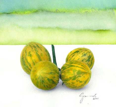 Green Zebra 8" x 8" watercolor and oil on black and white photograph order now more tomatoes