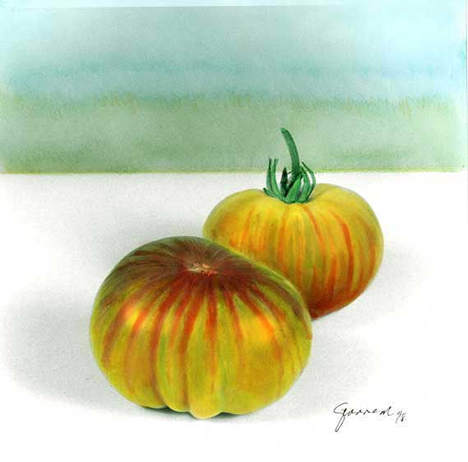 Marz Red 8" x 8" watercolor and oil on black and white photograph order now more tomatoes