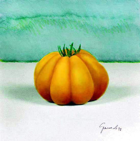 Mr. Brown Fluted 8" x 8" watercolor and oil on black and white photograph order now more tomatoes