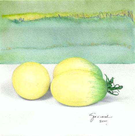 Old Ivory Egg 8" x 8" watercolor and oil on black and white photograph order now more tomatoes