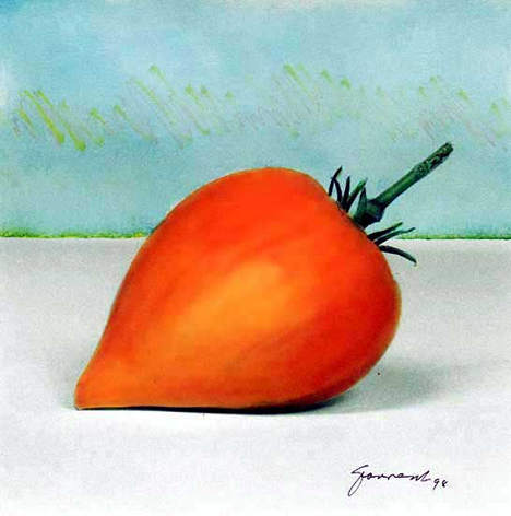Orange Strawberry 8" x 8" watercolor and oil on black and white photograph order now more tomatoes